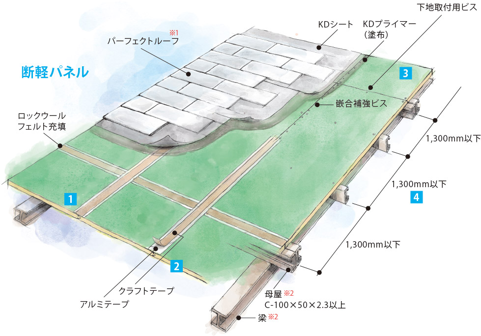 パーフェクトルーフに使用できる新しい下地が登場しました。屋根30分耐火取得(FP030RF-1963)